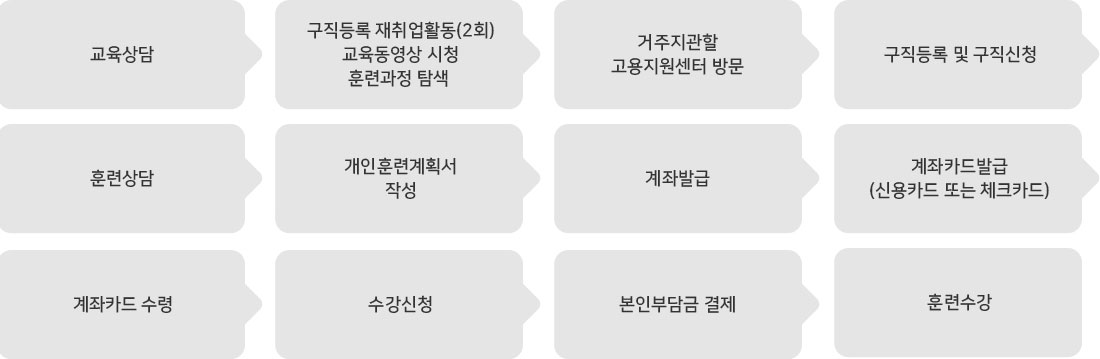 | 훈련과정 | 노동부가 인정한 적합훈련과정(ETPL, Eligible Training Program List)중에서 선택 |